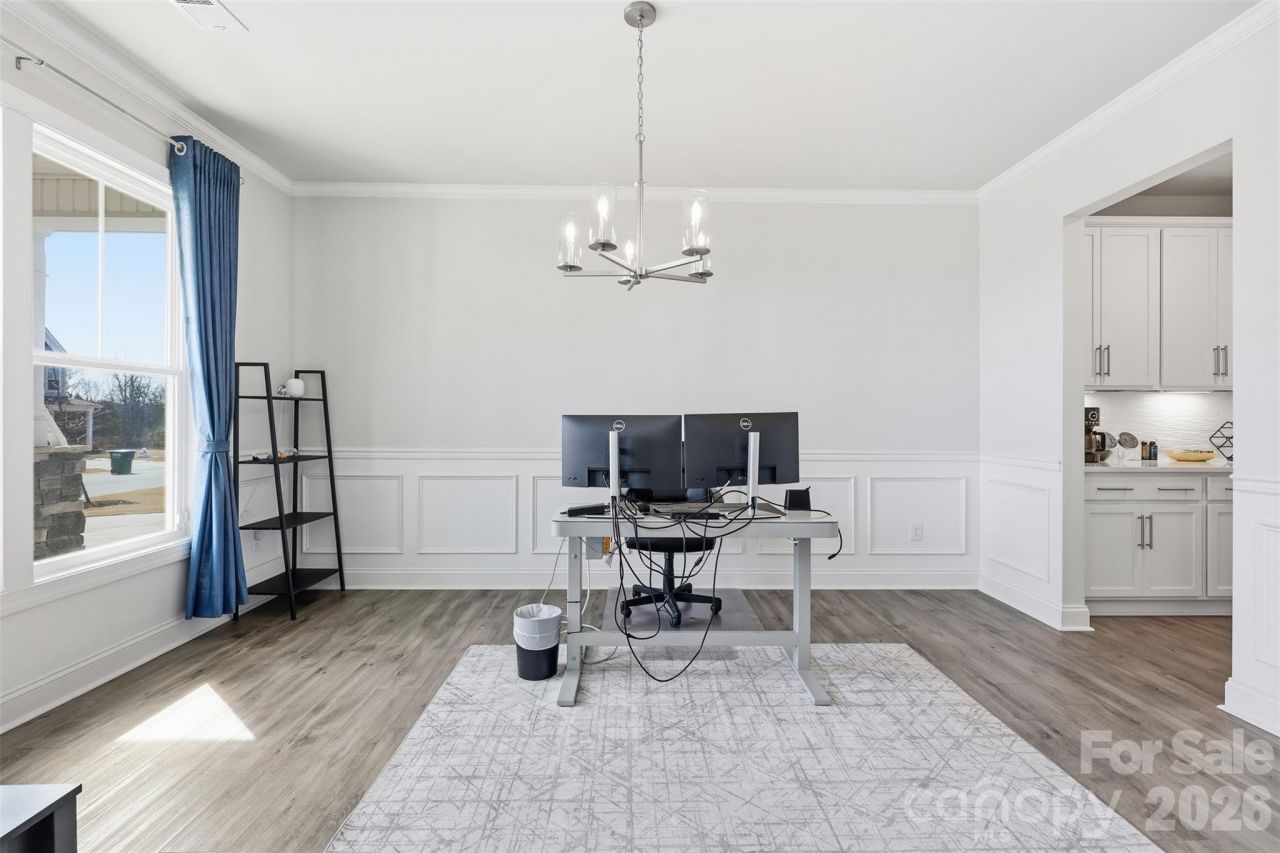 Step into luxury through a grand two-story foyer in this like-new 5-bed, 4.5-bath home on a spacious lot. it feels like top-of-the-line finishes throughout. The gourmet kitchen features stainless steel appliances, quartz countertops. The open family room boasts a raised-hearth fireplace and beautiful coffered ceilings , while an oversized office with double doors offers privacy. Oversized sunroom makes the home more beautiful. A large bonus room provides extra versatility. The upstairs primary suite includes a private sitting room, and a second primary or guest suite is conveniently located on the main level. Located in a sought-after Indian Trail/Mint Hill neighborhood, this home is the perfect blend of elegance, comfort, and modern design. Amazing yard backing to private wooded area. Easy access to interstate 485, shopping dining and entertainment.