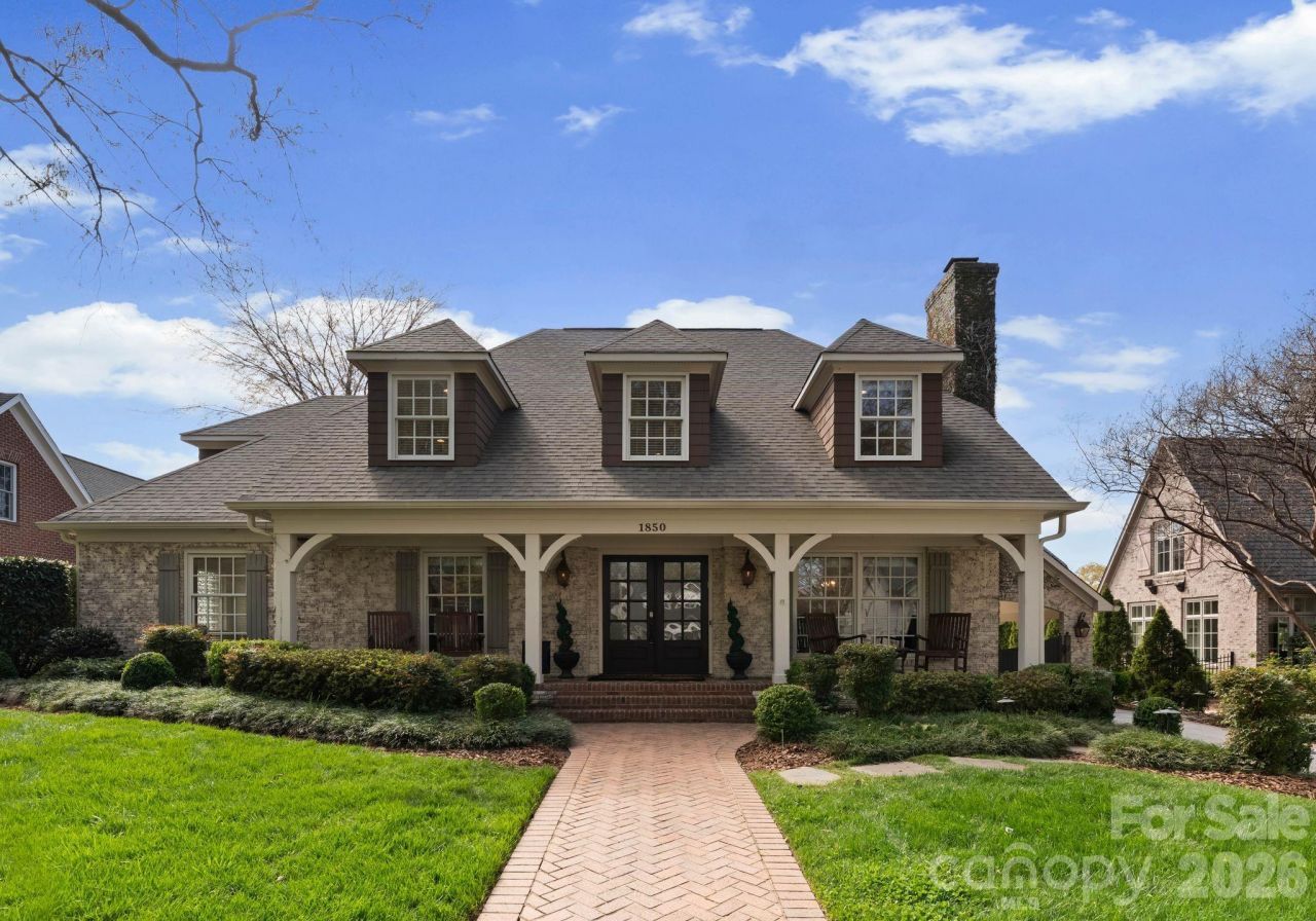 Elegant home with lovely curb appeal situated on one of Charlotte's most desired streets, in the heart of Myers Park! This home showcases exceptional craftsmanship and timeless style throughout. This beautiful and welcoming home features newly refinished hardwood floors across the main level and an open, light-filled floor plan designed for both everyday living and entertaining. The chef's kitchen is beautifully appointed with Thermador appliances, including a gas range, newly refinished and painted cabinetry, updated hardware, granite countertops, and a large island with a butcher block top. The kitchen flows seamlessly into the spacious great room, highlighted by a stunning stone fireplace, custom built-ins, and French doors that open to an expansive covered porch spanning the width of the home. The porch, complete with Trex decking, overlooks an entertainer's dream backyard featuring an outdoor kitchen, pizza oven, fireplace, and firepit?perfect for relaxing with a morning coffee or hosting evening gatherings. The primary suite is conveniently located on the main level and features French doors opening to the covered porch. The spa-like primary bath with steam shower includes newly refinished vanities and elegant quartz countertops. Upstairs, a spacious bonus room with built-ins serves as the central focal point, and is ideal as a media room or playroom. The second level also includes two bedrooms connected by a Jack-and-Jill bathroom with double sinks, an additional bedroom with bonus space, a fourth spacious bedroom, and a second full bathroom.A detached garage with second living quarters above features a private bedroom/bonus suite and full bath with a steam shower, offering the perfect space for guests, a home office, or studio, or an au pair.
