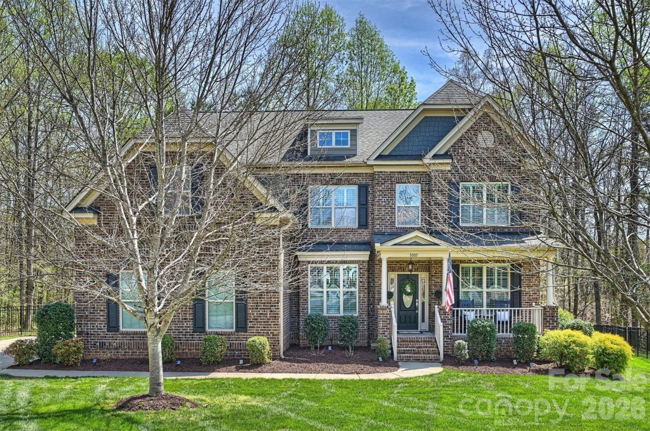 Beautiful all-brick home tucked away on a cul-de-sac lot in sought-after Wesley Chapel, zoned for the highly rated Cuthbertson School District! Situated on over a half acre surrounded by trees, this home offers both privacy and access to community walking trails.A welcoming rocking chair front porch sets the tone, leading into an interior filled with extensive molding, hardwood floors, architectural columns, and arched openings. The great room features a coffered ceiling, custom built-ins, and a stylish shiplap accent wall, opening seamlessly to a well-appointed kitchen with 42 white cabinetry, stainless steel appliances, granite countertops, gas cooktop, and double ovens.The main level includes a bedroom with custom built-ins, ideal for guests or a home office. A secondary bedroom features its own en suite bath for added convenience.The primary suite offers a tray ceiling and a spacious bath with dual vanities, seamless glass shower, jetted tub, and separate water closet. Spacious walk-in closet provides ample storage!Upstairs, an impressive bonus room with custom shelving and French doors provides flexible living space.Outdoor living includes a screened porch with composite flooring overlooking a private, fenced backyard, plus an additional deck perfect for grilling.High-quality finishes throughout with thoughtful details that make this home both functional and inviting. Don't miss this opportunity to own an estate style home in the heart of Union county!