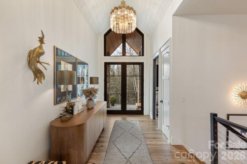 Built in 2021 and positioned on approximately 1.96 acres, this contemporary mountain residence offers refined craftsmanship, modern comforts, and striking Whiteside Mountain views from every room on the main level and many rooms on the lower level. Located within the gated Cullasaja Club community in Highlands, NC, the home captures the relaxed elegance and natural beauty of the Highlands-Cashiers Plateau.The main level centers around a spacious great room with soaring ceilings and a gas fireplace shared with the primary owner's suite. Expansive sliding glass doors frame the mountain landscape and open to a screened porch with a wood-burning fireplace, creating a seamless indoor-outdoor living experience. The porch connects to an open deck accessed from the primary suite.The primary bedroom is located on the main level and features mountain views along with a generous ensuite bath that includes a soaking tub, glass walk-in shower, and walk-in closets.The kitchen blends clean design with high-end functionality and features built-in appliances including a gas stove and double ovens. A formal dining area and casual dining space provide flexibility for everyday living and entertaining.The lower level offers additional living space designed for comfort and recreation. Two guest bedrooms share a Jack-and-Jill bath, while the recreation room includes a fireplace, pool table area, and wet bar. Sliding doors lead to a covered deck with a hot tub.Large windows throughout the home bring natural light indoors while showcasing the impressive mountain views.Approved membership provides access to Cullasaja Club's world-class amenities, including an Arnold Palmer?designed championship golf course, clubhouse dining, wellness facilities, tennis, swimming, and a vibrant social calendar. Additional features include lake access to Ravenel Lake and an extensive trail network throughout the community, with connections to the adjoining National Forest.