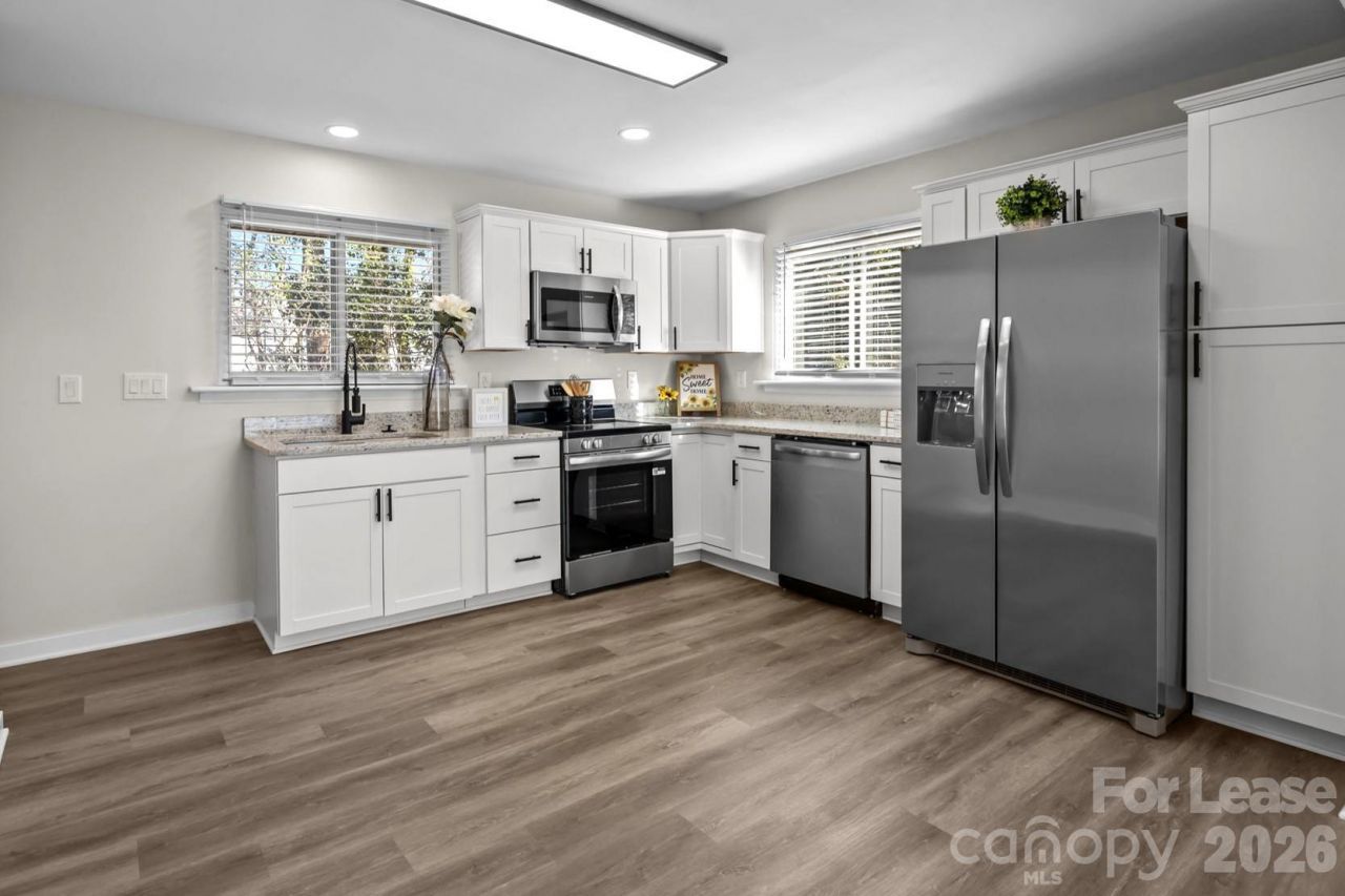 Beautifully remodeled 2,000 SF Home located in the highly desirable Enderly Park neighborhood, known for its proximity to Uptown Charlotte, No HOA restrictions, and surrounding renovated and new construction homes. The main level offers 3 bedrooms and 2 full bathrooms, while the lower level features 2 additional bedrooms, a full bath, a spacious family room, ideal for a home office or flexible living space, the laundry, and a huge workshop. The basement provides interior access as well as direct exterior access to the patio, enhancing privacy and functionality. The home showcases an open-concept living, dining, and kitchen layout, perfect for both everyday living and entertaining. All appliances are included, including refrigerator, washer, and dryer. Situated on a quiet cul-de-sac lot, the property is fully fenced with a private fence, offering a peaceful outdoor setting suitable for executive or family living.